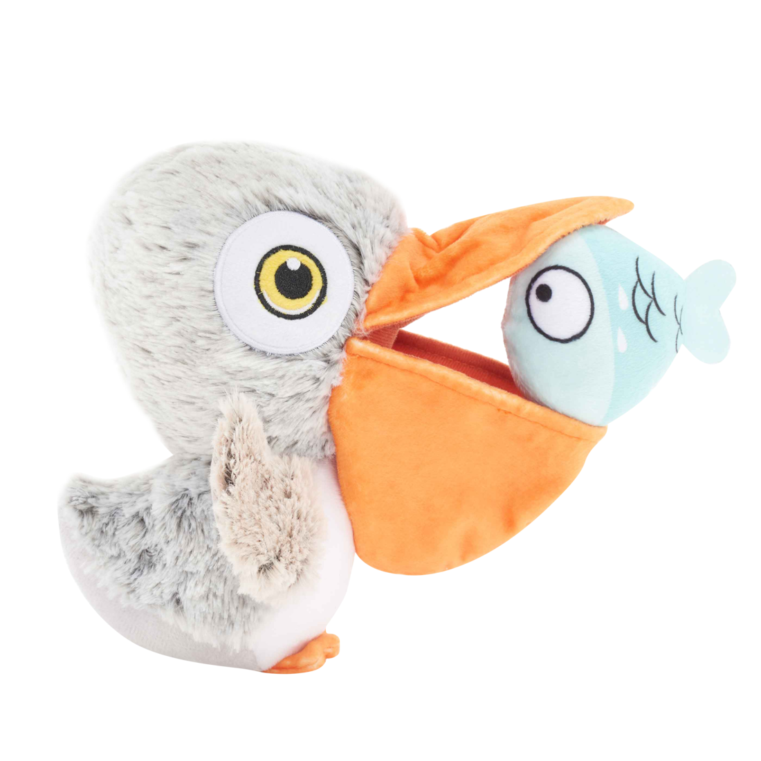 Daisy Doodle Of North America > Products > Bark Big Bill & Beak-a-boo Fish Pelican Bird Fish Plush Dog Toy, Small/Medium